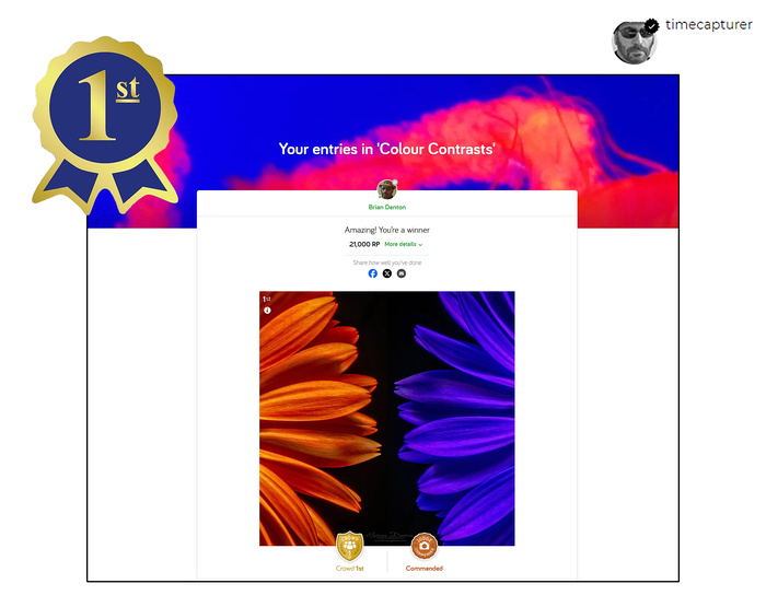 THE IMAGE “PETAL ATTRACTION 2” WAS JUDGED THE WINNER IN THE OCTOBER 2025 PHOTOCROWD “COLOUR CONTRASTS” COMPETITION.